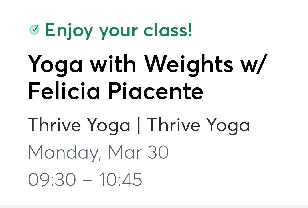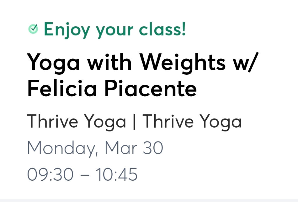 while I was in the US, I took a yoga with weights class at Thrive Yoga. I had been resistant to taking such a class because it seemed to be drifting away from the purpose of yoga, to bind the mind and body. But it came available so decided to check it out.