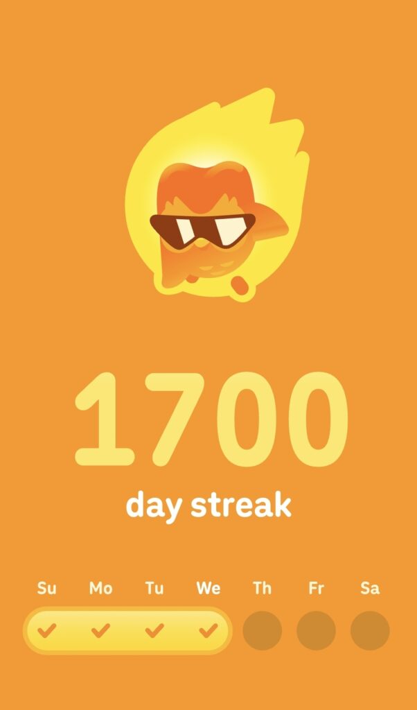 1700 days in a row on Duolingo today. Todavía no puedo hablar español.