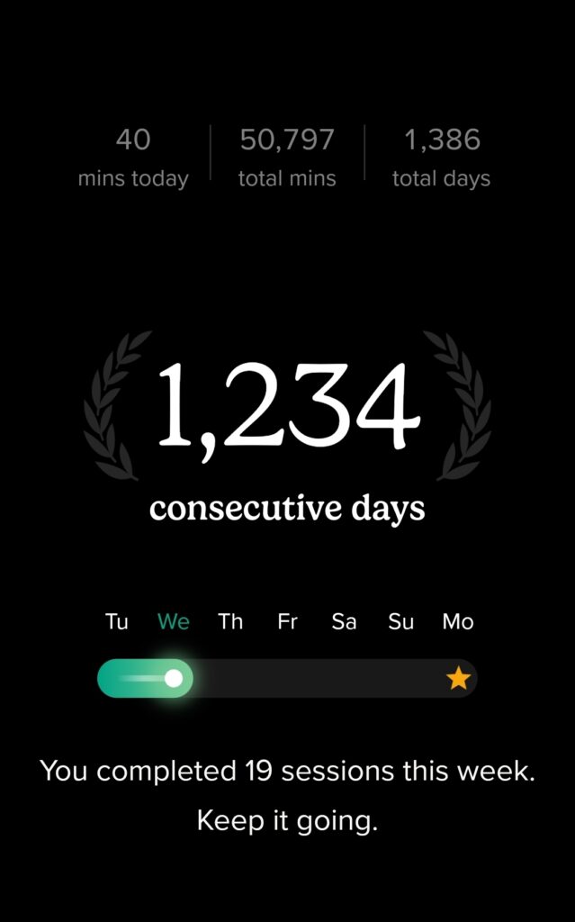 Yesterday was 1234 days of meditation. I’ll keel going at least to 5678.