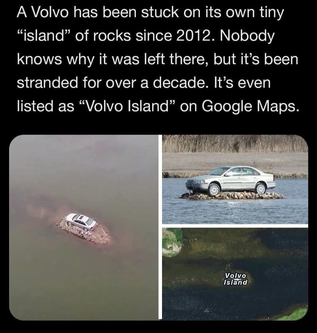 Volvo Island Posted on September 12, 2025 by markd60 Nee vacation spot? I think not. Read about it HERE, if you wish. Happy Friday! Have a good weekend!